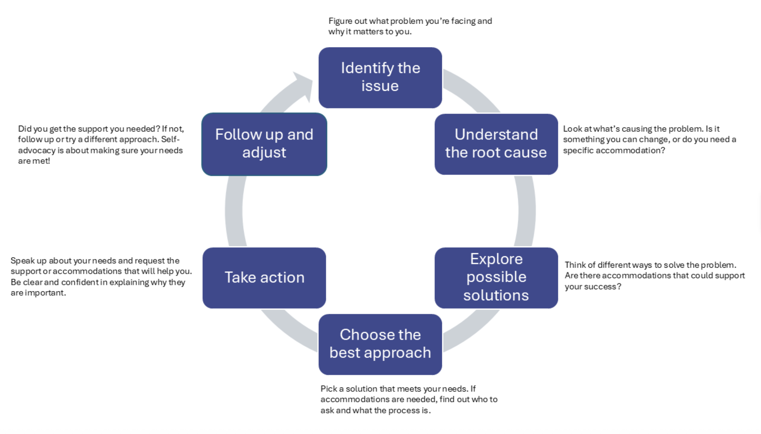 - Be open to discussing solutions with your school, employer, or service provider.